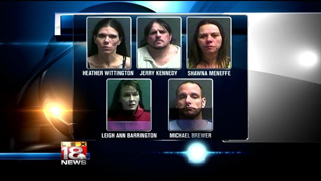 Police said Heather Whittington, Jerry Kennedy, Shawna Menefee, Leigh Ann Barrington and Michael Brewer were all arrested after they received medical treatment.