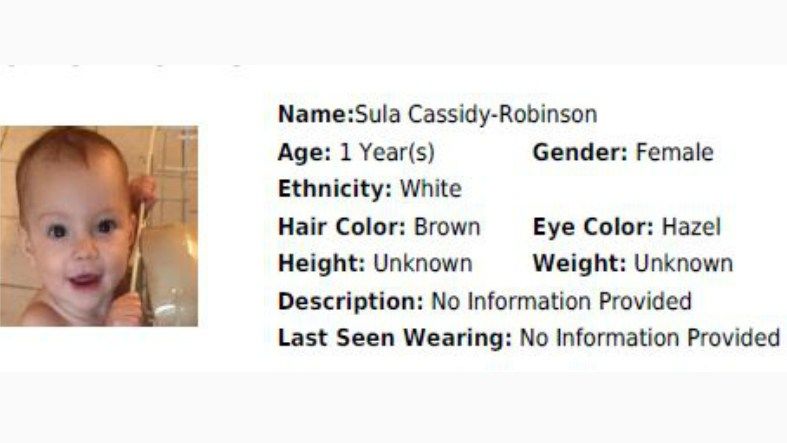 The two children, Callen Cassidy-Robinson, a 6-year-old boy, and Sula Cassidy-Robinson, a 1-year-old girl, were last seen on May 3, 2015 with their non-custodial moth Heather Lynn Cassidy. Cassidy is white, six-foot and 140 pounds with red hair and hazel eyes.