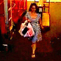 The woman is described as white with a medium build and long dark hair. She might be driving a dark Saturn.